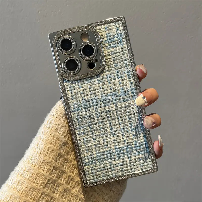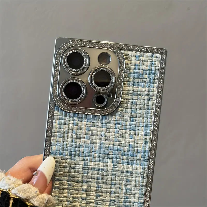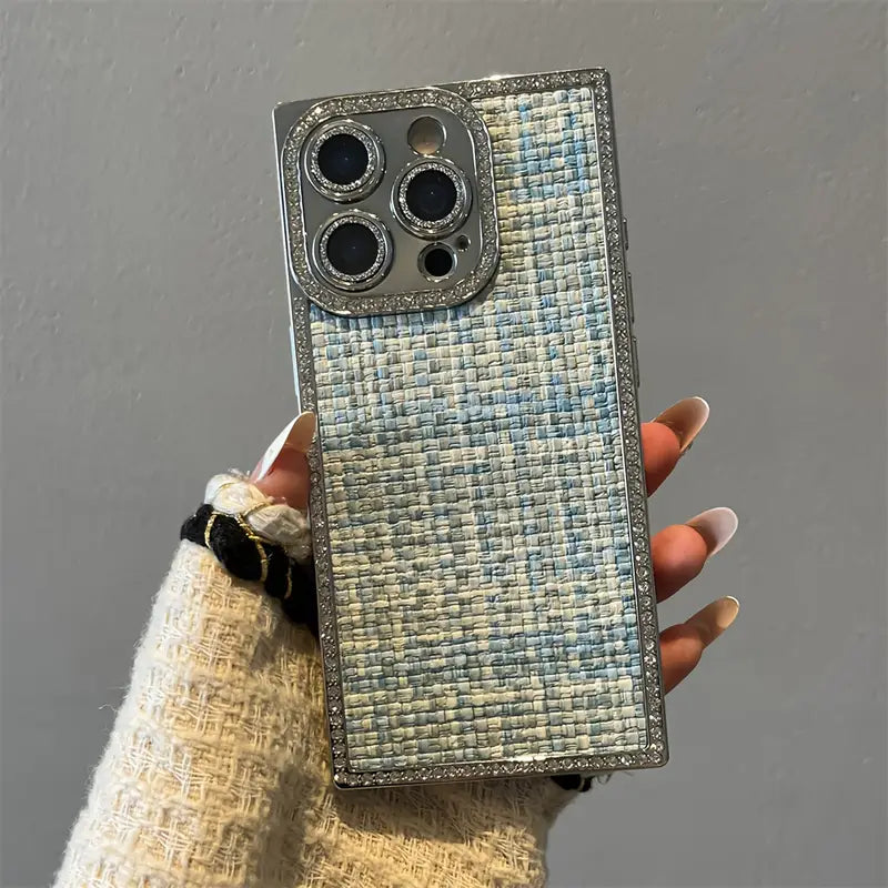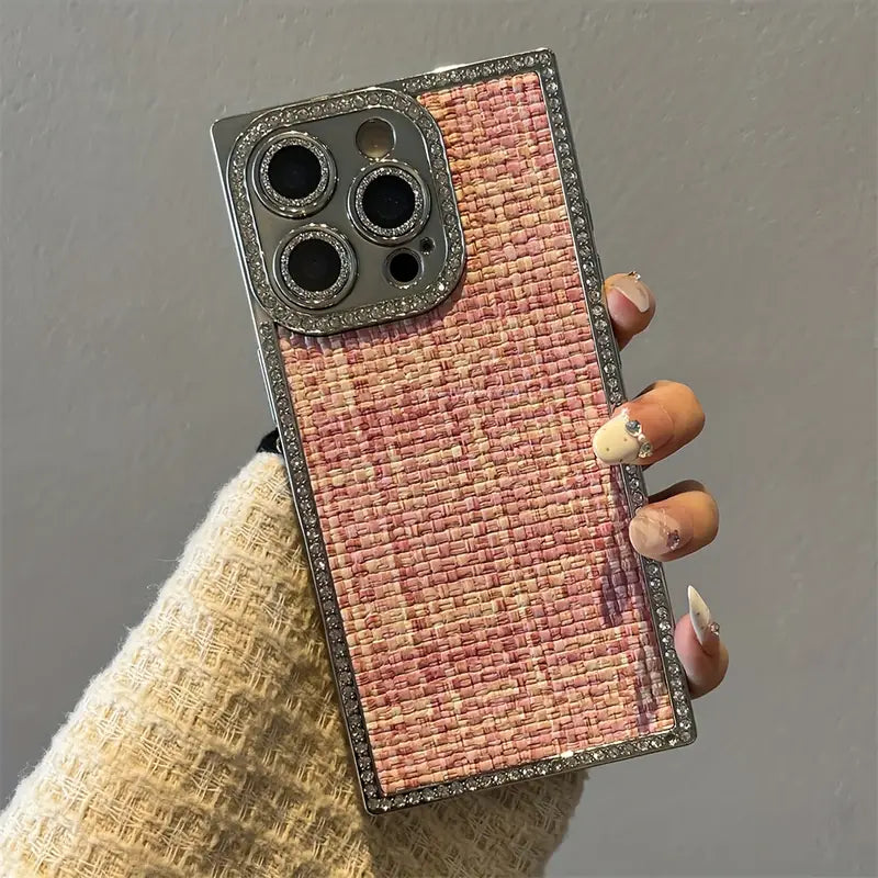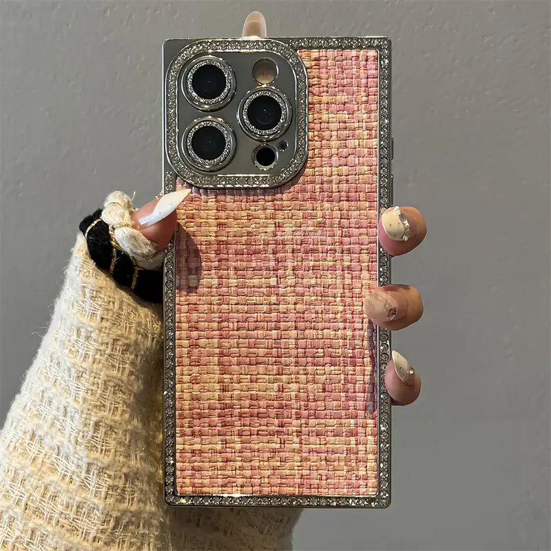 Step into elegance with the Blush Weave Case — where luxury meets texture.This case brings the iconic woven pattern to your phone, wrapped in soft blush tones and framed with shimmering crystal borders. It’s not just a case — it’s a fashion statement that complements every outfit, from café dates to boardrooms. Designed for the modern woman who loves subtle glamour, premium feel, and everyday protection.