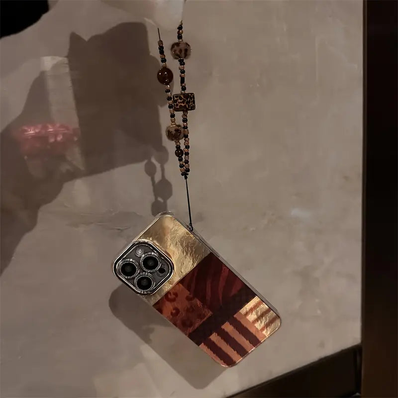 Add a touch of bold elegance to your phone with this retro-inspired leopard print bracelet chain phone case. Designed for girls who love to stay stylish, this case combines functionality with glam. The shimmering glitter accents and trendy lattice design make it the perfect accessory for every occasion – from casual hangouts to party nights.