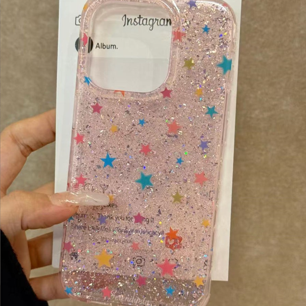Add a touch of sparkle and charm to your phone with the Colorful Star Glitter Case. This stunning cover features a transparent pink base adorned with vibrant, glittery stars that catch the light and brighten up your day. Perfect for anyone who loves stylish, eye-catching designs, this phone case combines aesthetics with functionality to protect your phone while elevating its look.