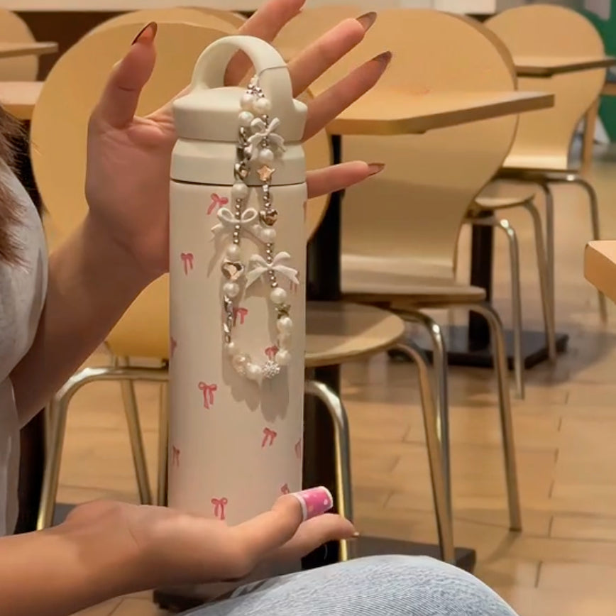 Elevate your daily routine with the Elegance Bow Charm Tumbler, featuring a sleek design with pink bow patterns and pearl-like accents. Adorned with decorative charms like bows, hearts, and metallic details, it’s the perfect blend of style and functionality for the fashion-forward.