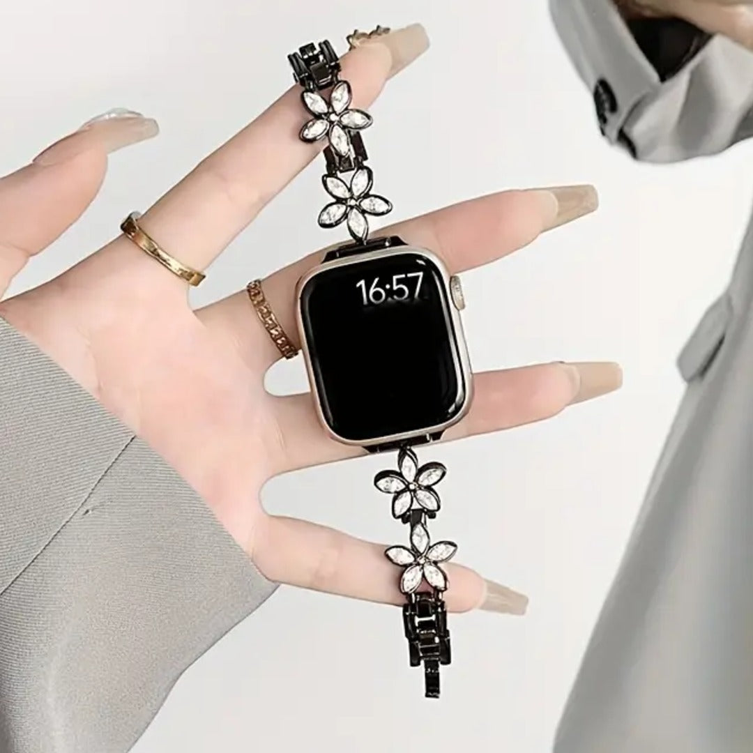 Elevate your wrist wear with the elegant Five Petal Blossom Metal Bracelet Stylish Strap, a perfect blend of sophistication and charm. Designed with delicate flower accents, this metal bracelet strap brings a touch of floral beauty to your smartwatch or timepiece.
