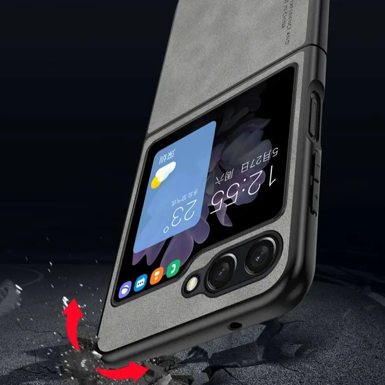 The Sheep Luxe Premium Leather Case for the Samsung Galaxy Z Flip6 offers luxurious protection crafted from high-quality sheepskin leather. With its smooth, soft texture and sophisticated design, this case adds an element of elegance while providing robust protection for your foldable device. The slim, lightweight design fits perfectly, ensuring both the front and back are safeguarded from scratches, drops, and daily wear.