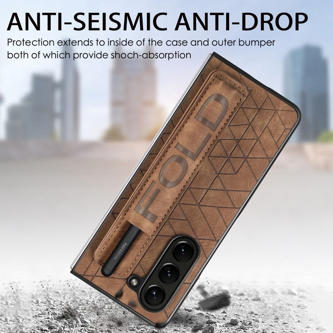 Galaxy Z Fold5 Elegant Leather Wristband & Pen Holder Case