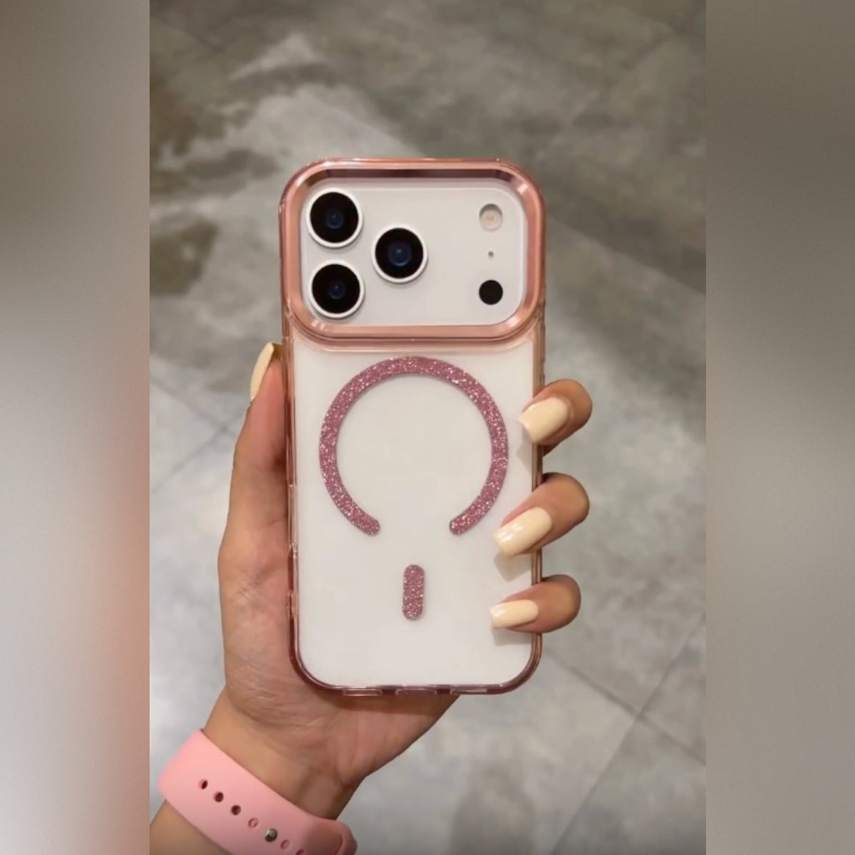 The Glitter Starlight Case is designed for users seeking subtle sparkle and sophisticated texture. Unlike cases with liquid or smooth glitter, this series features a dense, fine glitter embedded into the material, giving the back a slightly textured, matte-sparkle finish. The design is minimalist, with the primary focus on the material's texture and shimmer. The side rails of the case are smooth, matching the glitter color, and the camera cutout is designed to offer clean, raised protection for the lenses.