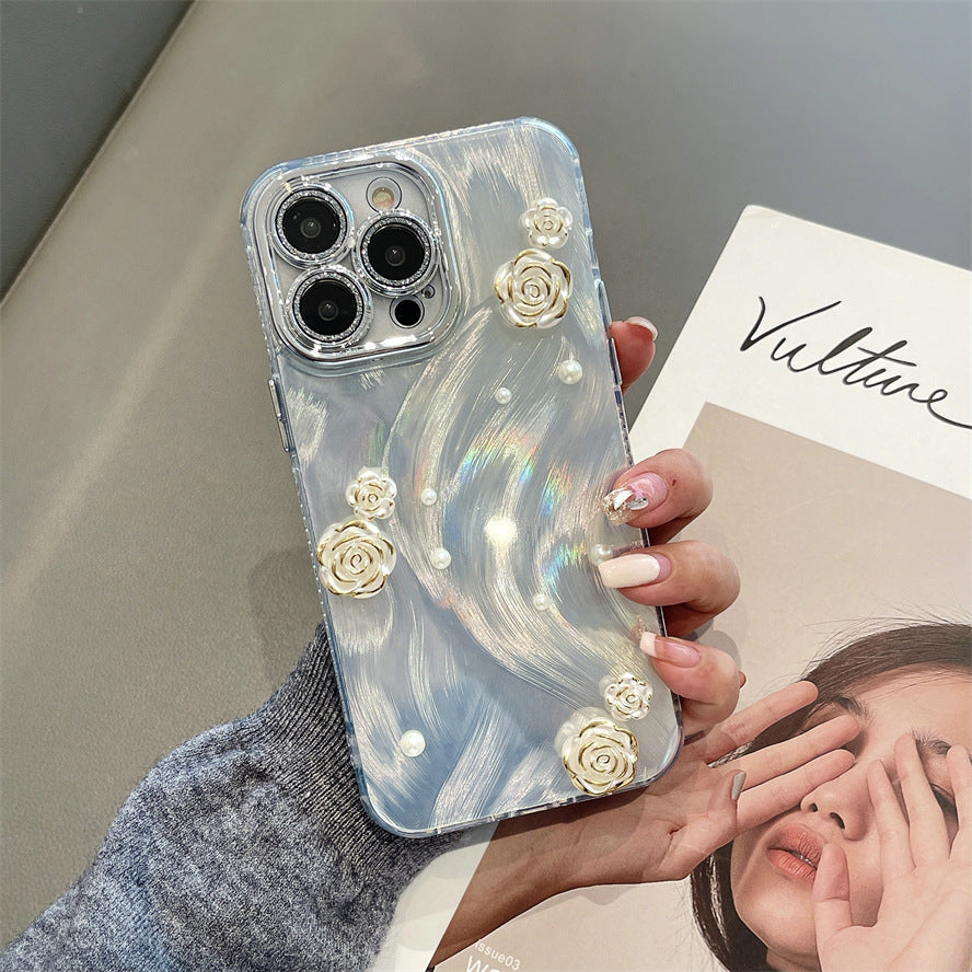 - Elegant Design: Adorned with 3D pearl and rose accents on a holographic background for a chic, classy look.