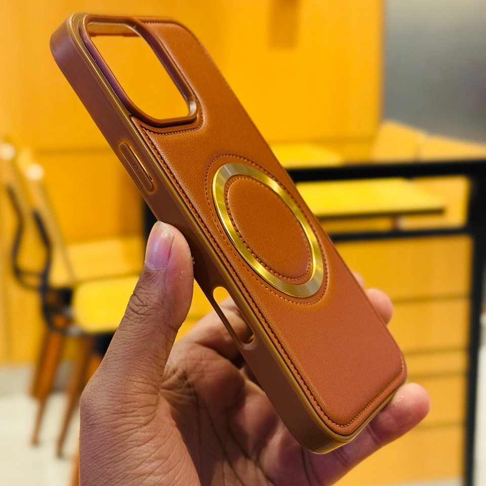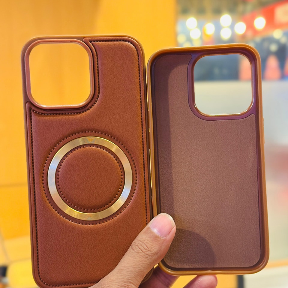 The Luxury Plated Ring MagSafe Leather Case offers a refined blend of sophistication and functionality. Crafted with premium leather and a sleek plated ring holder, this case ensures a comfortable grip, hands-free convenience, and full MagSafe compatibility for seamless charging and accessories.