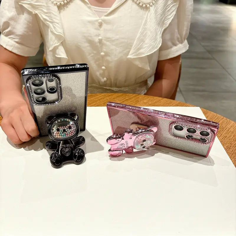 Elevate your phone’s style with this Luxury Sparkling Diamond-Encrusted Phone Case. Featuring a cute bead bear design and a hidden telescopic holder, this super puffy and protective case combines luxury with functionality.