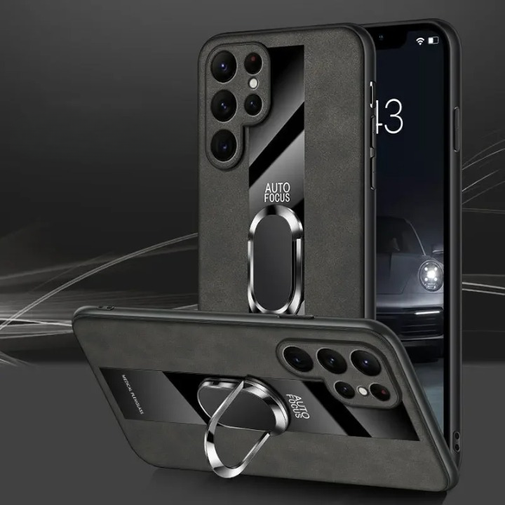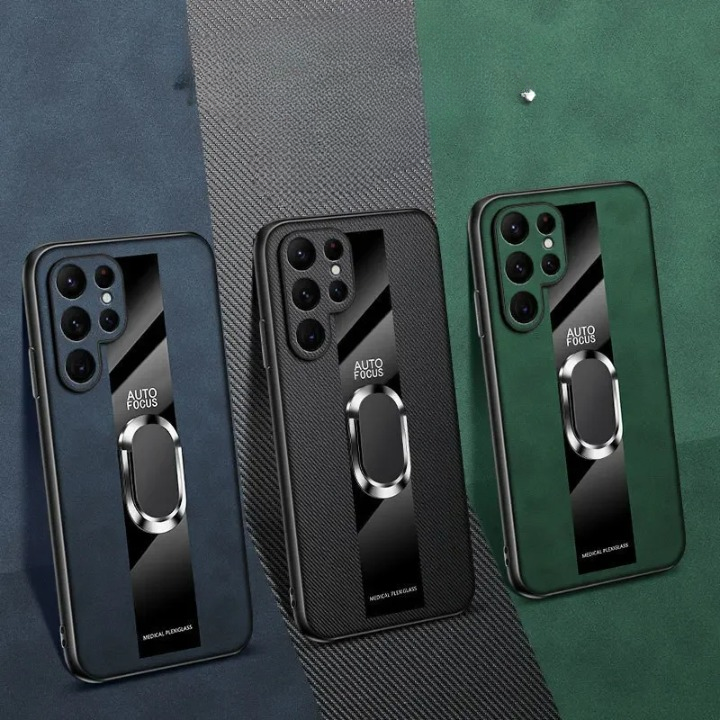Protect your phone with the PlexiGuard Leather Ring Holder Case, combining the luxury of sheep leather with the durability of plexiglass fiber. This premium case is designed with a built-in ring holder for easy gripping and hands-free use, while its anti-shock construction shields your device from drops and impacts. Ideal for those who value both style and functionality, this case offers a strong, protective barrier without compromising on elegance.