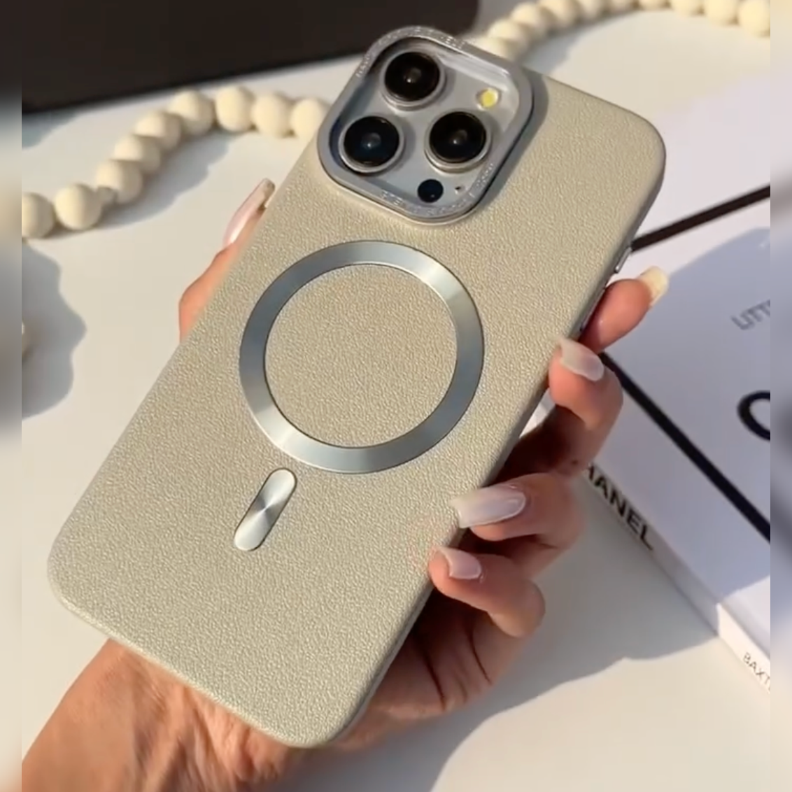 Upgrade your phone protection with this premium textured leather MagSafe case, combining sophistication with functionality. Its refined leather finish provides a luxurious feel, while the MagSafe compatibility ensures effortless magnetic attachment and fast charging.