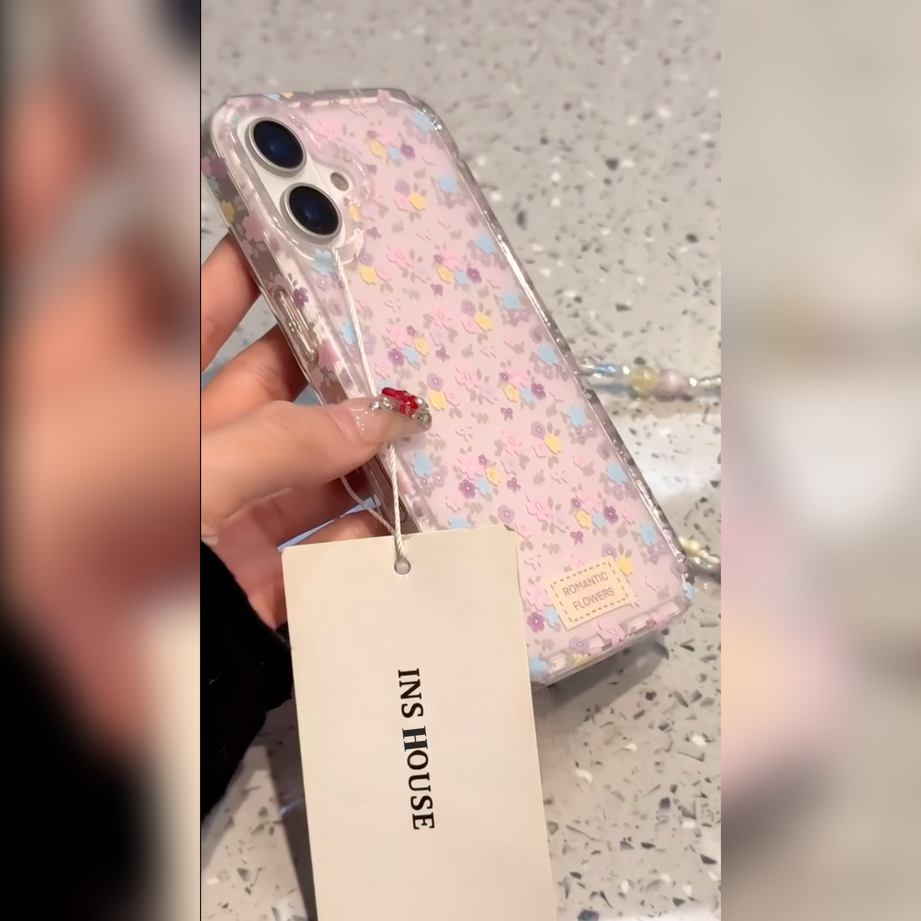 - Beaded Wrist Strap: Comes with a detachable beaded wrist strap that’s both practical and stylish, allowing you to carry your phone effortlessly.