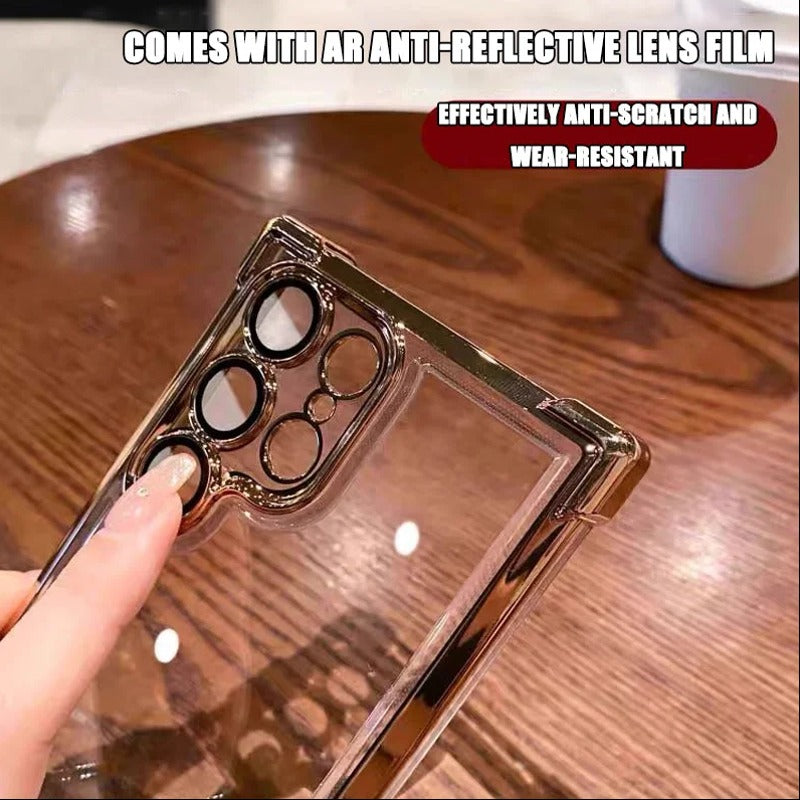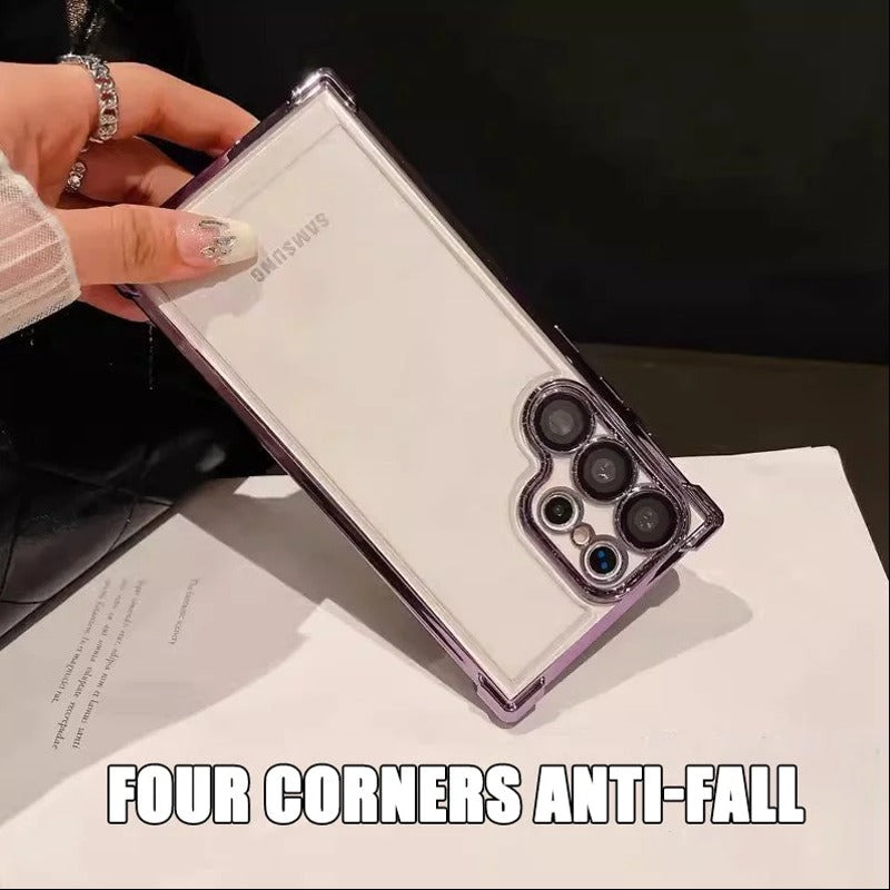 Introducing the Shine Shield Corner Bumper Protection Case for Samsung, a sleek and reliable solution designed to safeguard your device from everyday bumps, drops, and scratches while adding a touch of style. Crafted with precision and quality materials, this case provides comprehensive protection without compromising on aesthetics or functionality.