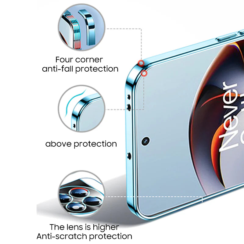 The ShinePro Electroplated Clear Case for OnePlus is the perfect blend of elegance and protection. Designed to showcase the sleek design of your OnePlus phone, this case features a crystal-clear back with a high-gloss electroplated border that adds a touch of sophistication.
