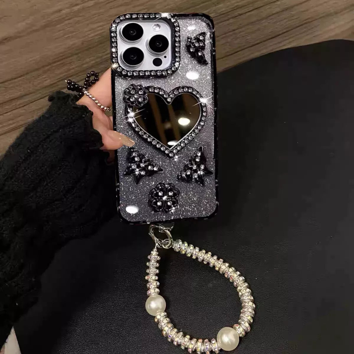 The Sparkling Heart Mirror Case combines elegance and practicality with its glittery finish and heart-shaped mirror. Perfect for those who want stylish protection for their phone, it adds a touch of glam to your everyday essentials.