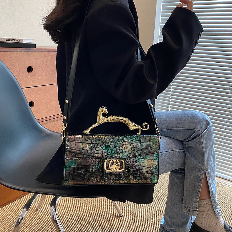 Stylish Leather Crossbody Bag with Designer Metal Handle