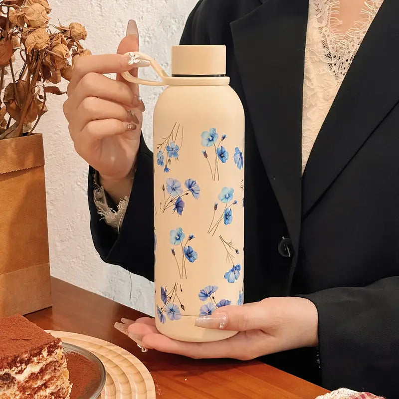 Embrace nature's tranquility with the Wildflower Serenity Water Bottle. This elegantly designed bottle features delicate blue wildflower prints, bringing a touch of beauty to your everyday hydration.
